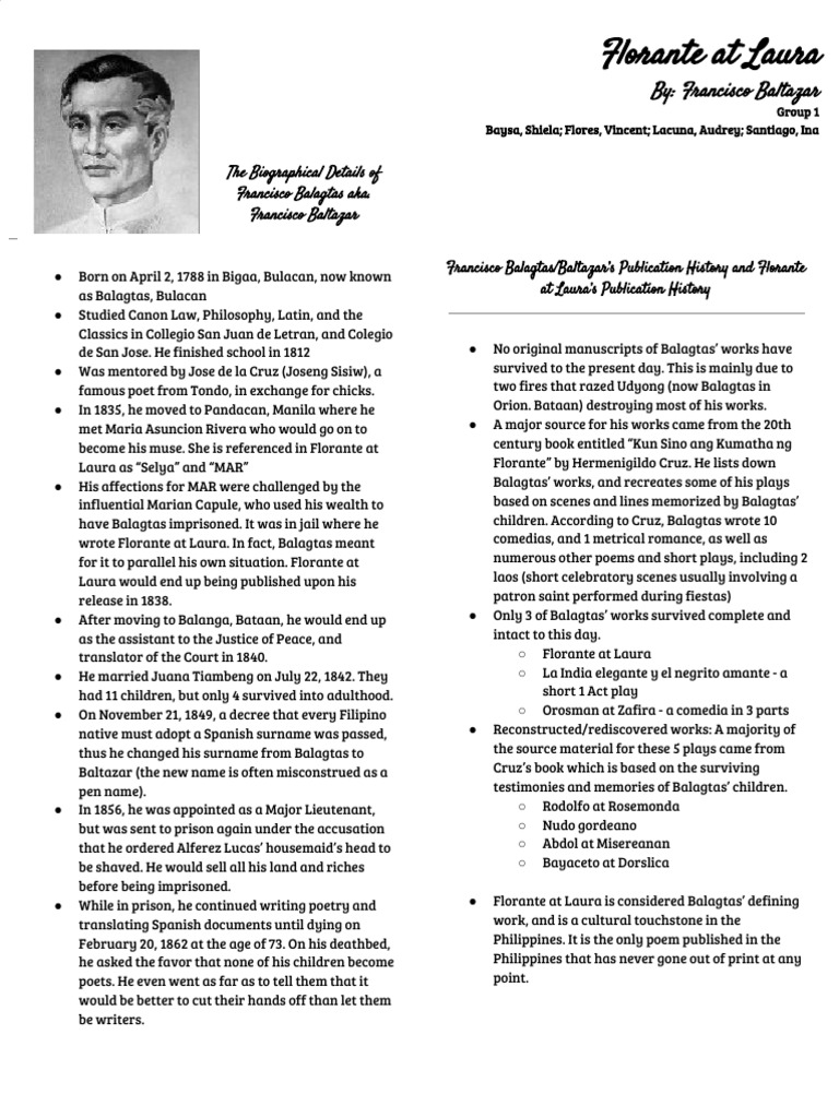 Francisco Balagtas - poems - Publication Date. The famous epic Florante at. The famous epic Florante at Laura is regarded as his defining work.